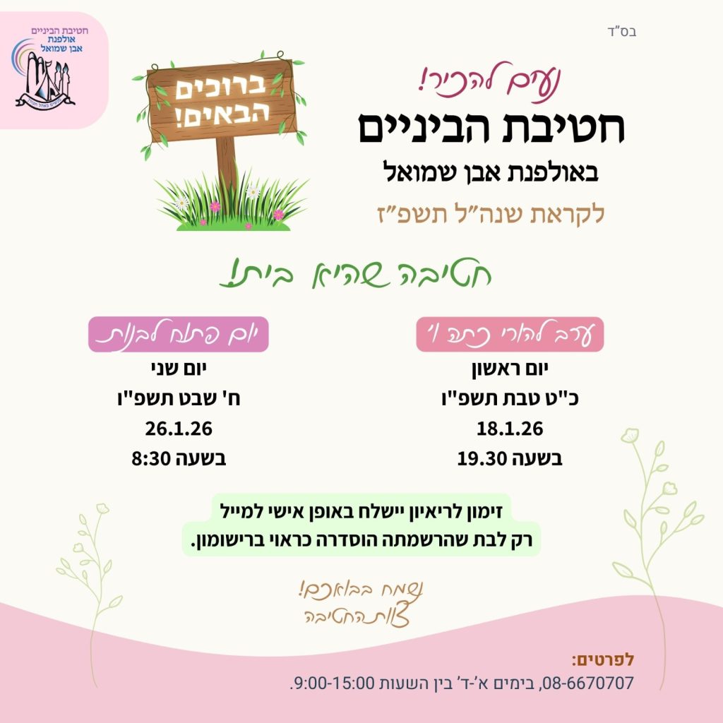 להתרשם מהאוירה, לשמוע על הדרך החינוכית, תוכנית הלימודים